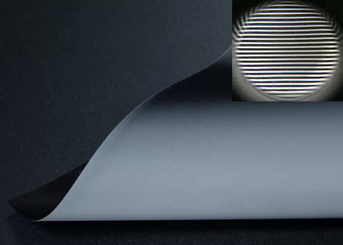 Black grid ALR fabric is designed with a special structure,which consists of a black and white prism,black coating is used to adsorb ambient light and white bevel reflects the light of projector.Black grid ALR fabric presents a horizontal zigzag.This design effectively reduces ambient light interference from the top, while improving the viewing Angle to 160 degrees and can absorb 90%-95% ambient light,in daytime and highlight ambient light can still show a very good image