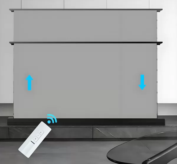 this floor rising projector screen can be put on the ground,on the table or in your TV cabinet…Providing you with a wonderful movie viewing experience